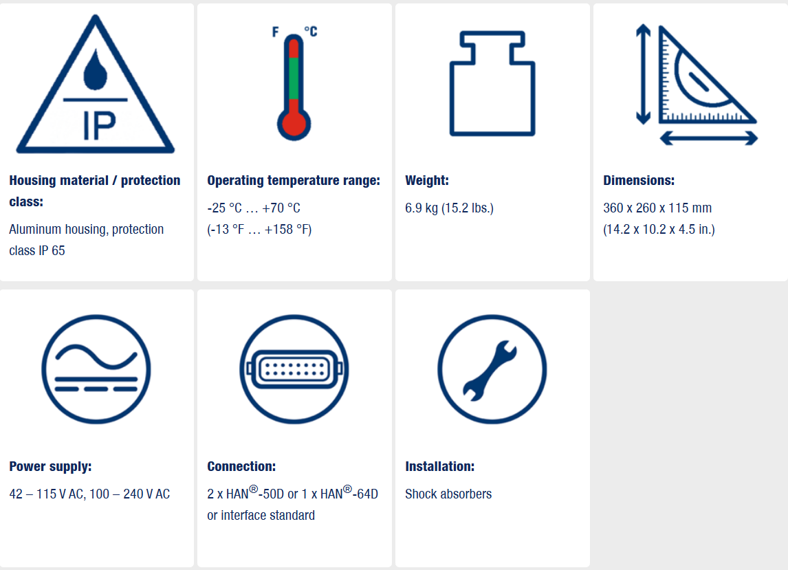 • Diverse analog and serial interfaces, for example CANopen, Profibus-DP, RS232/485, Profinet, SAE J1939, UART, IQAN and DeviceNet